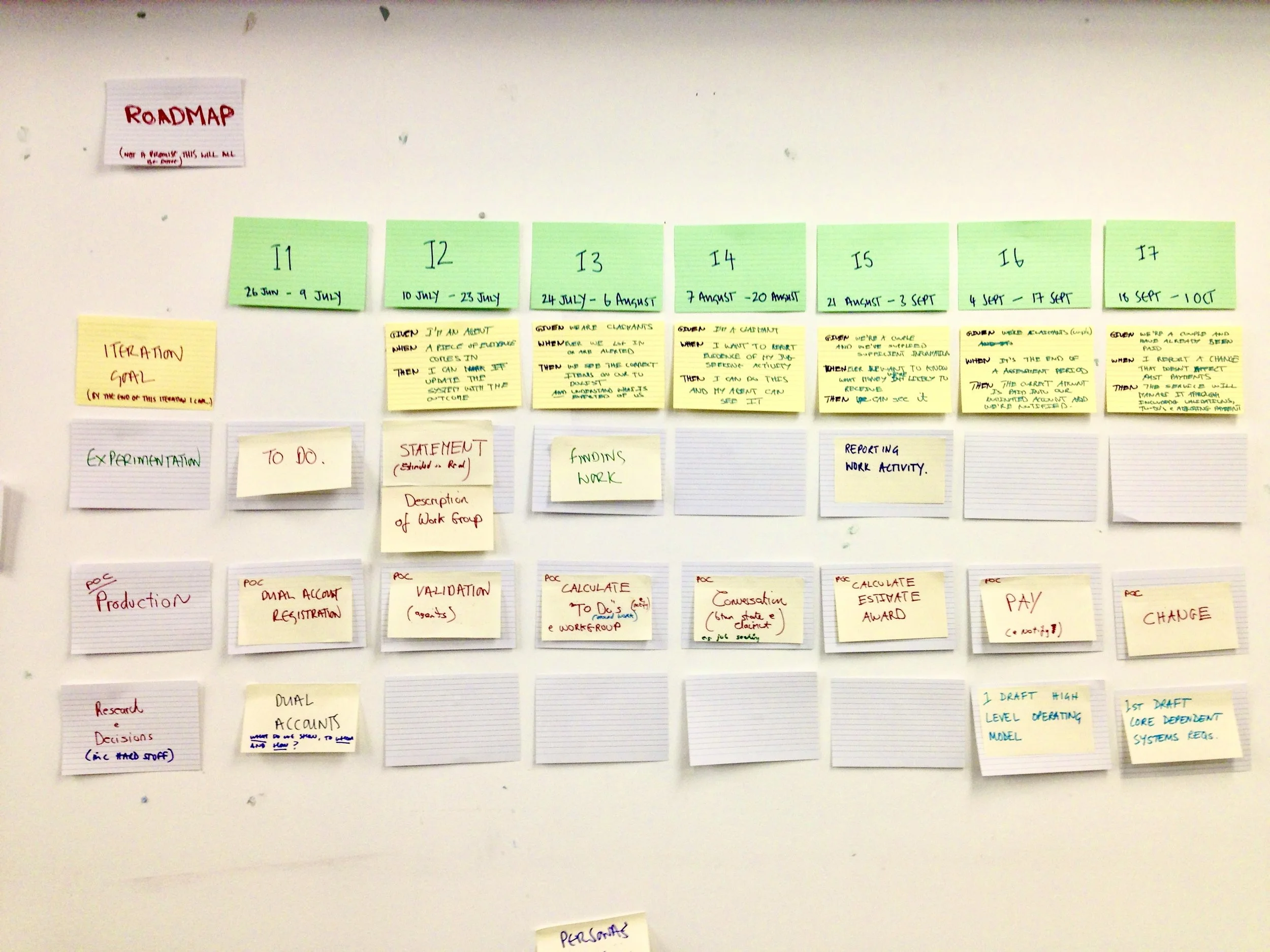 The team used this 8x5 grid to discuss the approach for a proof of concept, intended to show a different service design and delivery approach for Universal Credit during its reset.